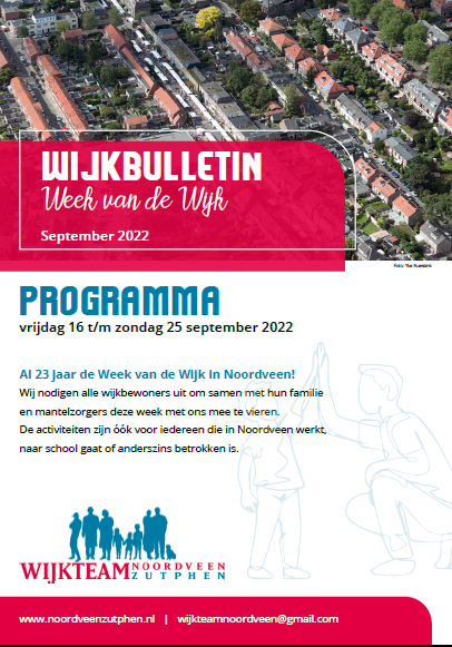 Lees (hier) in het wijkbulletin nieuws over Noordveen en natuurlijk het programma van de Week van de Wijk 2022.