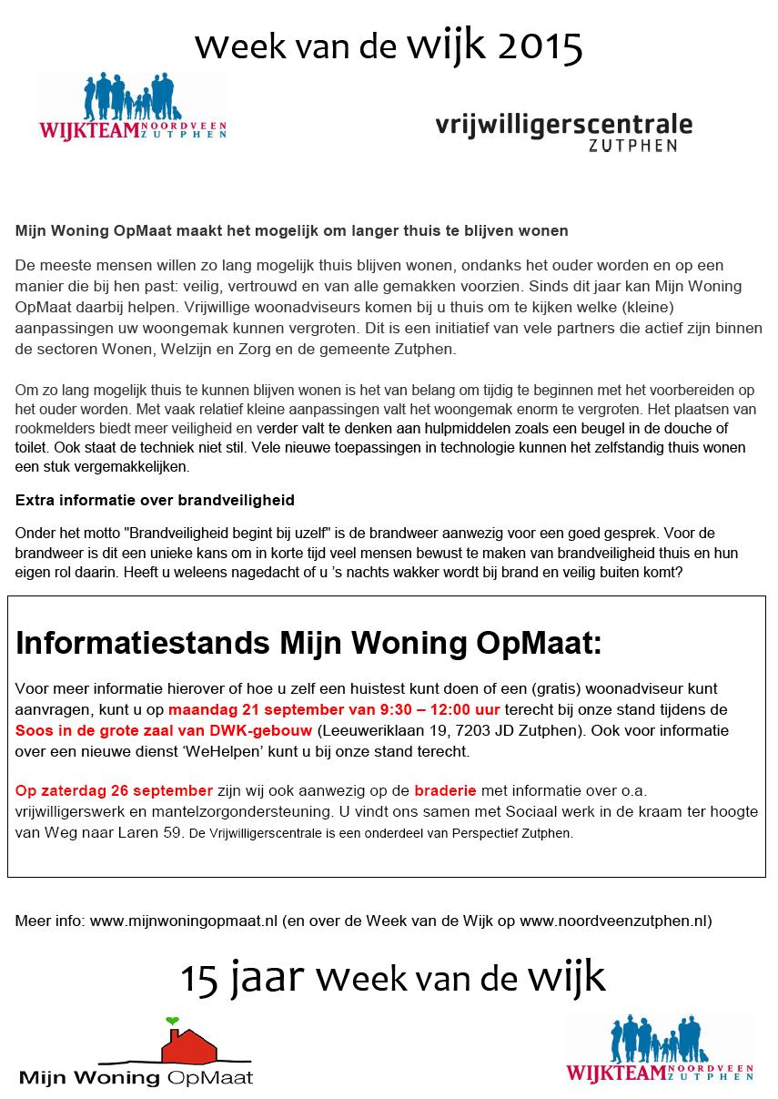Ook op andere momenten tijdens de Week van de Wijk kunt u informatie krijgen over Mijn Woning OpMaat en Wehelpen.nl. Zie ook onderstaande flyers:
