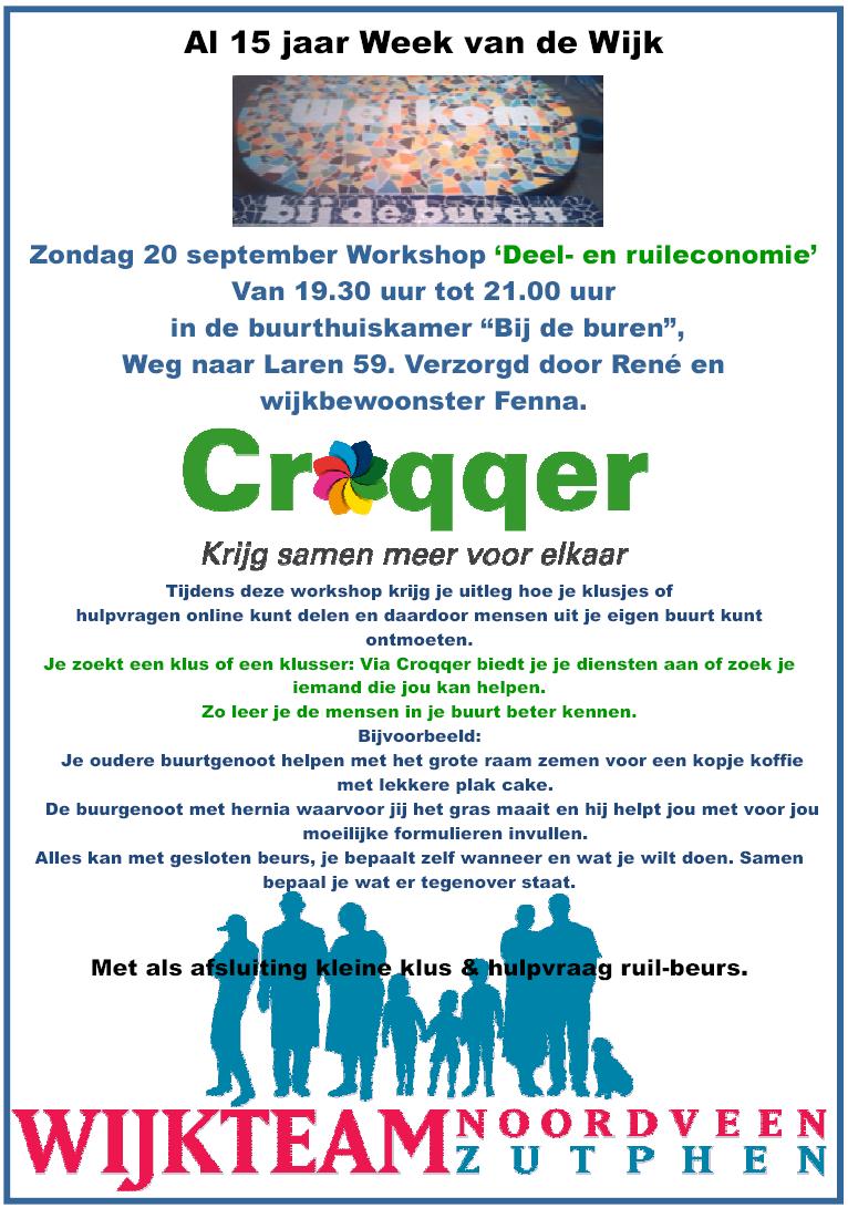 19.30-21.00 uur Workshop ‘Deel- en ruileconomie’ in de buurthuiskamer “Bij de buren”, Weg naar Laren 59 verzorgd door René en wijkbewoonster Fenna.