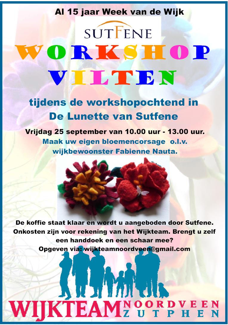 - 10.00-13.00 uur: gratis kennismakingsworkshop vilten: bloemcorsage maken in