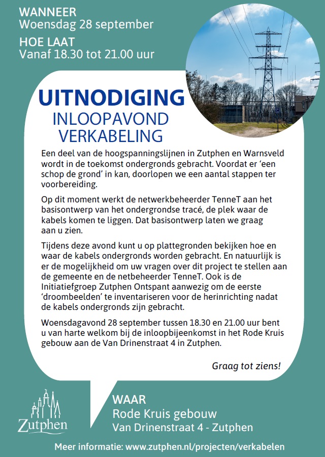 Op woensdagavond 28 september 2022 was er een inloopavond in het Rode Kruisgebouw aan de Van Drinenstraat in Zutphen over de plannen voor het ondergronds brengen van hoogspanningslijnen en Zutphen en Warnsveld.