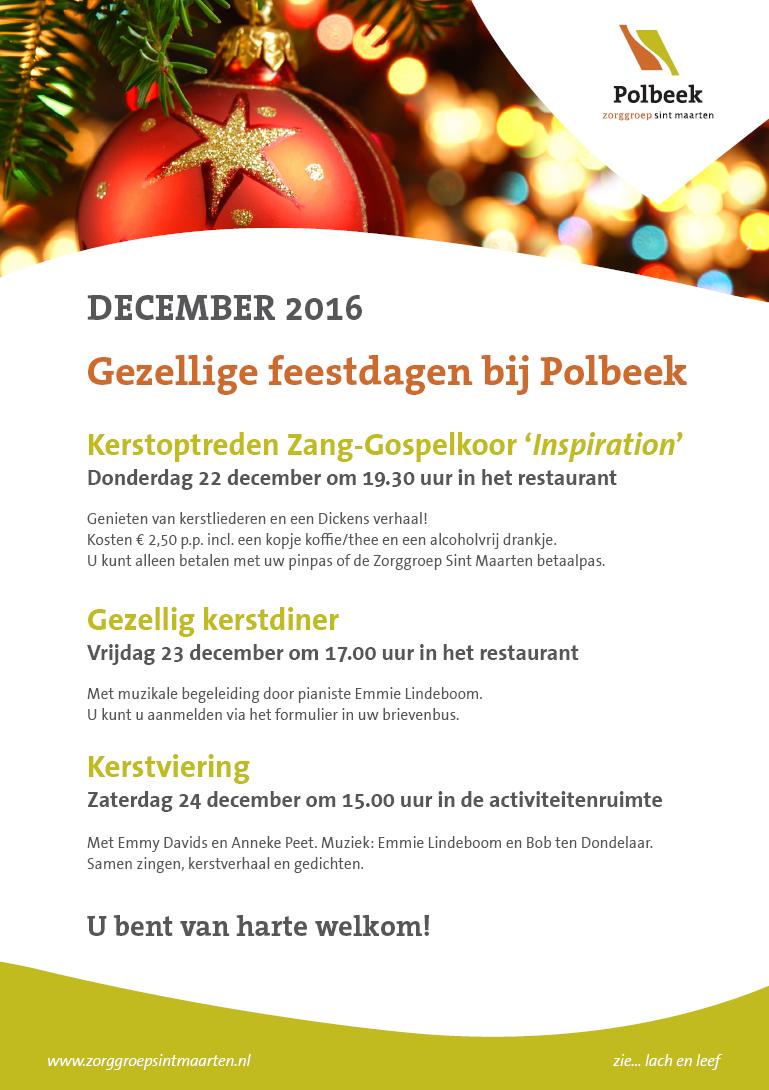 Kerstactiviteiten PolbeekNieuws Polbeek nodigt u van harte uit voor onderstaande kerstactiviteiten. Voor het kerstdiner kunnen wijkbewoners en andere geïnteresseerden zich aanmelden via het aanmeldformulier onderaan deze pagina. Wees er op tijd bij!
