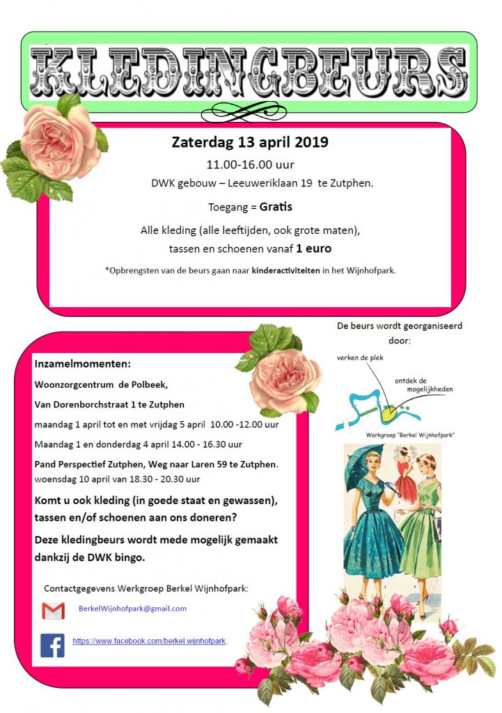 Om leuke (kinder)activiteiten te kunnen blijven organiseren, houdt de werkgroep op zaterdag 13 april 2019 van 11.00-16.00 uur een kledingbeurs in het DWK-gebouw, Leeuweriklaan 19 te Zutphen. De beurs wordt mede mogelijk gemaakt door de DWK bingo.
