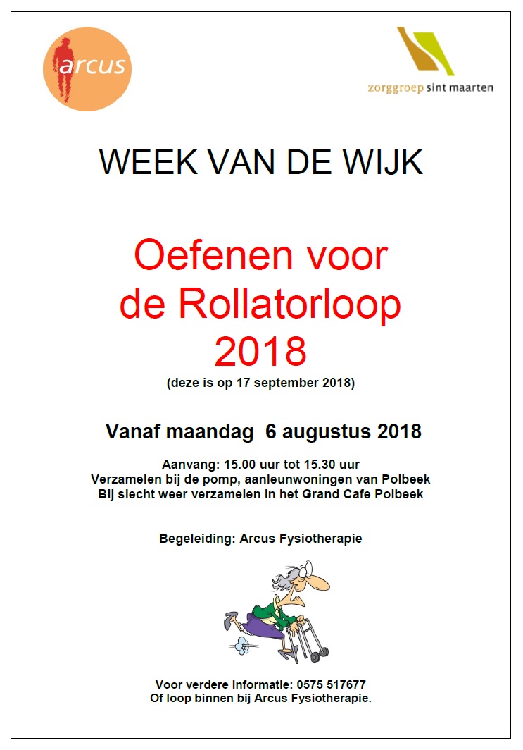 Tijdens de week van de wijk, van 14 tot en met 23 september 2018 organiseert Arcus Fysiotherapie op maandag 17 september a.s. voor de 3e keer de Rollatorloop.