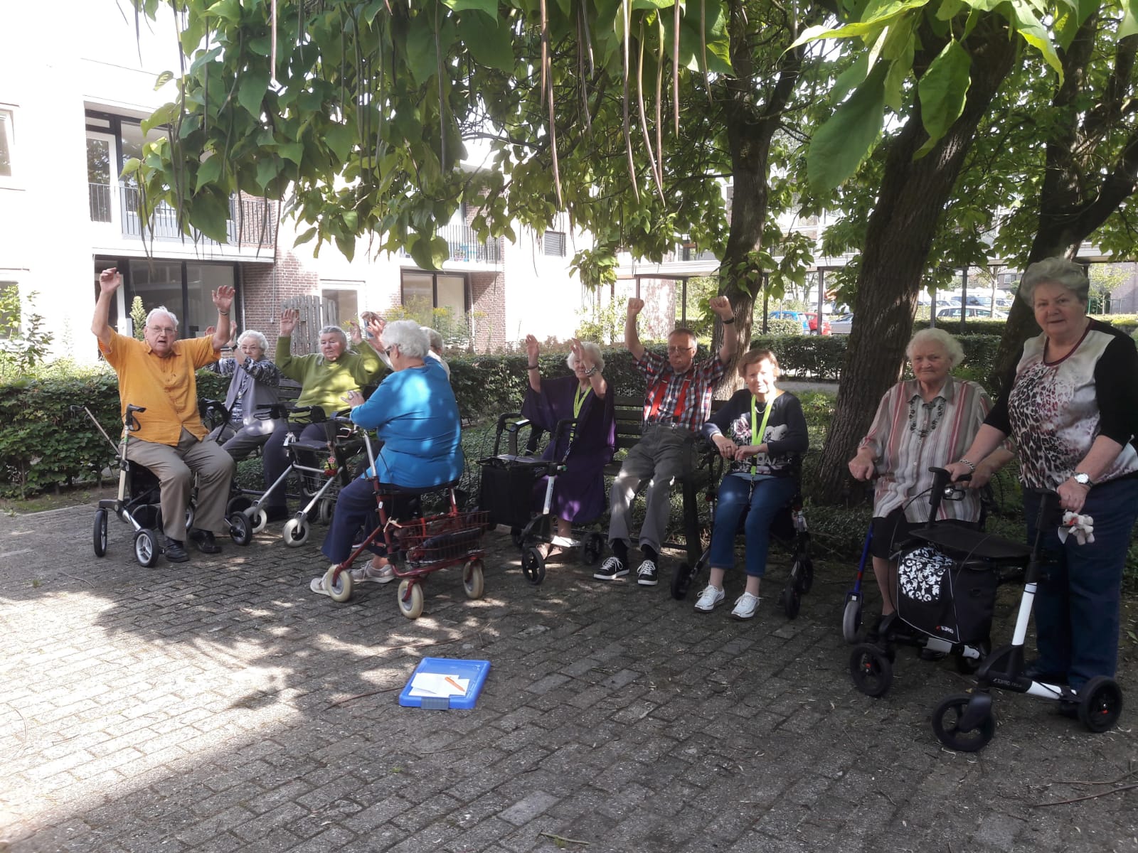 Het oefenen doen we ook bij het woonzorgcentrum “De Polbeek”. We verzamelen bij de pomp.