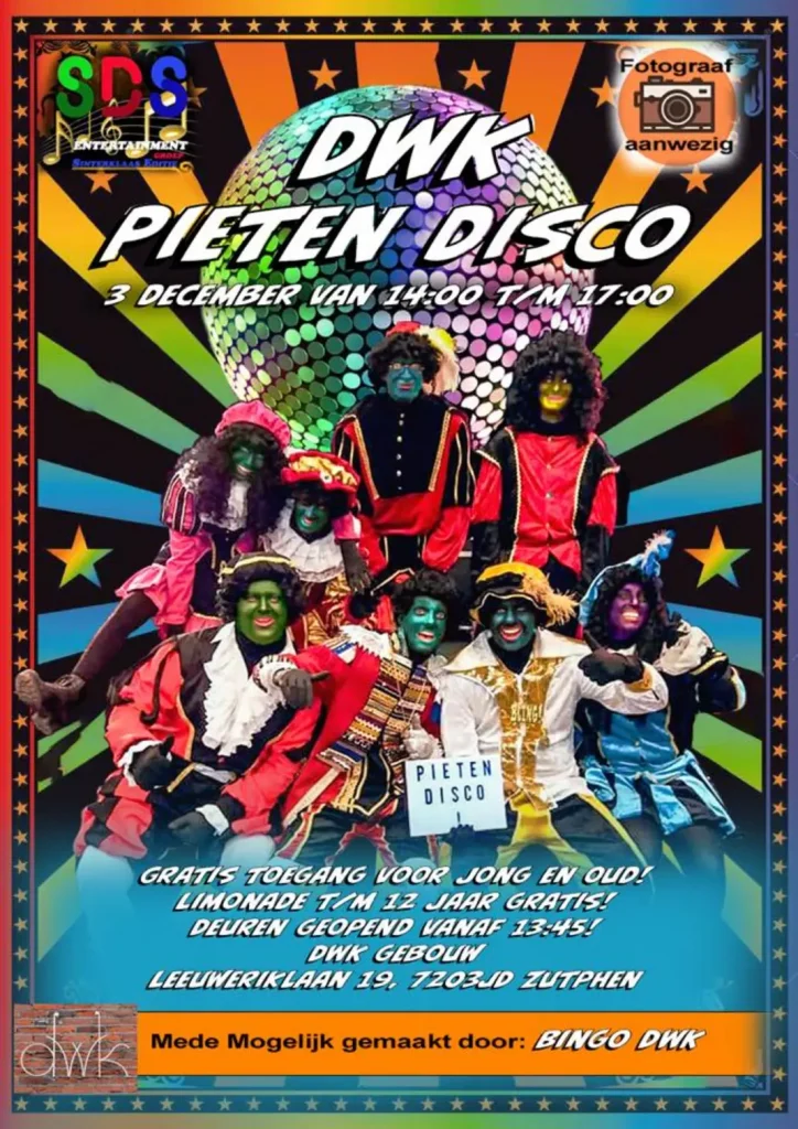 Pietendisco DWK / Nieuws / Door Chantal Elskamp Jaarlijks een zeer geslaagde activiteit: De pietendisco in het DWK-gebouw, Leeuweriklaan 19. Kom je ook?
