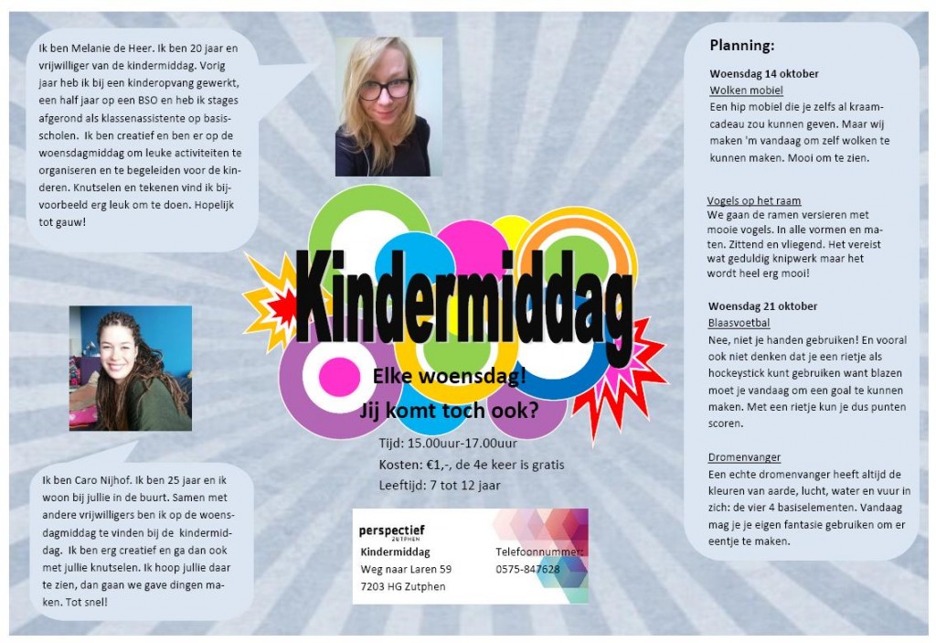 Ook benieuwd wat er de komende weken te doen is tijdens de kindermiddag? Lees het hieronder!