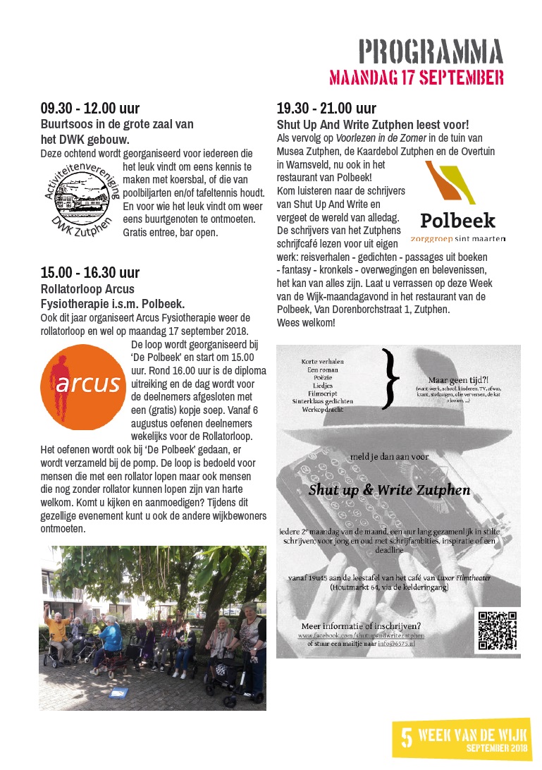 Programma maandag 17 september – Week van de Wijk 2018Nieuws, Projecten, Week van de wijk, Week van de wijk 2018 Op deze Week van de Wijk-maandag zijn verschillende activiteiten waar iedereen welkom is, zie hieronder.