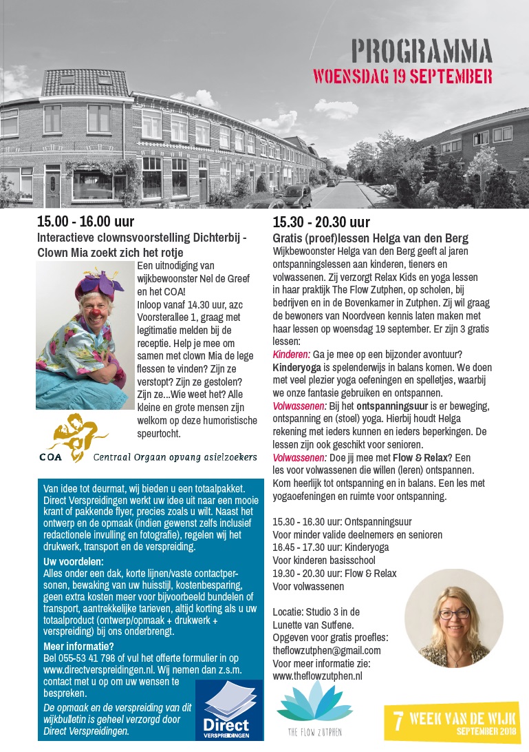 Programma woensdag 19 september – Week van de Wijk 2018Nieuws, Projecten, Week van de wijk, Week van de wijk 2018 Op de woensdag in de Week van de Wijk is er voor allerlei leeftijden iets te doen: