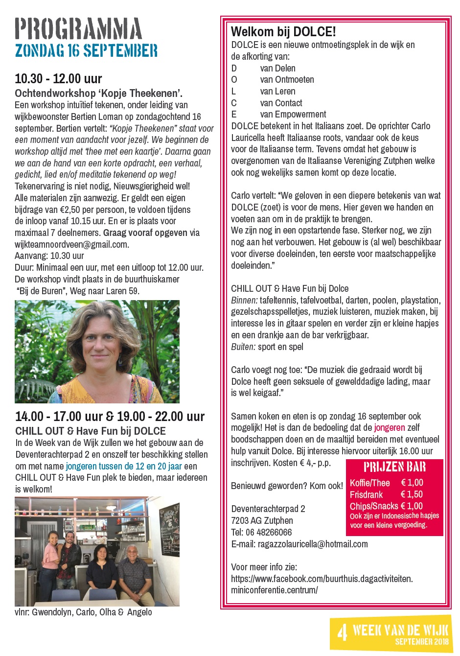 Programma zondag 16 september – Week van de Wijk 2018Nieuws, Projecten, Week van de wijk, Week van de wijk 2018 Op zondag 16 september zijn er meerdere activiteiten, zie informatie hieronder. Van harte welkom!