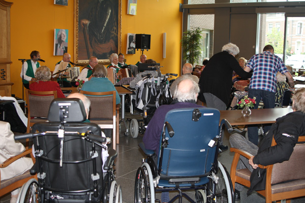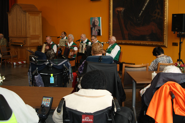 De mooie ruimte van De Lunette, de aanwezigheid van de Monica’s en een zeer geïnteresseerd publiek leverde een zeer sfeervolle middag op met een optreden met mooie muziek en zang. Activiteitenbegeleiders en vrijwilligers wisten perfect te zorgen voor een goede organisatorische gang van zaken. Een hele kunst met al die rolstoelen in de zaal.