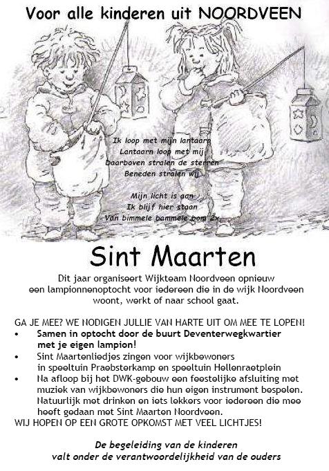 Sint Maarten Noordveen 2017 vindt plaats op zaterdag 11 november en bestaat uit een lampionknutselochtend (zie elders op deze website) een een lampionnenoptocht.