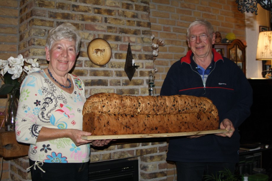 Winnaars krentenbrood raden: wijkbewoners de heer en mevrouw Keijzer: