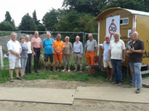 Foto aannemer Dusseldorp met bewoners rondom Voorsterallee juli 2014 []Door Chantal Elskamp / 17 juli 2014
