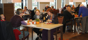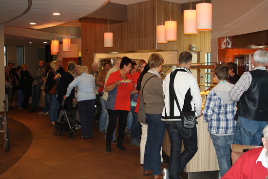 ’s Avonds bezocht de wethouder het stamppotbuffet op woonzorgcentrum Polbeek en genoot zij evenals de vele andere bezoekers van een heerlijke maaltijd. De activiteit is zoals elk jaar goed bezocht door jong en oud, maar bereikte dit jaar zelfs de status ‘uitverkocht’. Ruim 160 maaltijden zijn verkocht aan wijkbewoners en daarnaast at een aanzienlijke groep Polbeek-bewoners gezellig mee. Bijzonder was dit jaar de bijdrage van enkele zeer jonge vrijwilligers, die met een afvalcontainer langs de tafeltjes gingen om te helpen afruimen. Maar ook in de spoelkeuken werd hard gewerkt door een tweetal jonge vrijwilligers. Zij ontvingen complimenten van collega-vrijwilligers en organisatie.