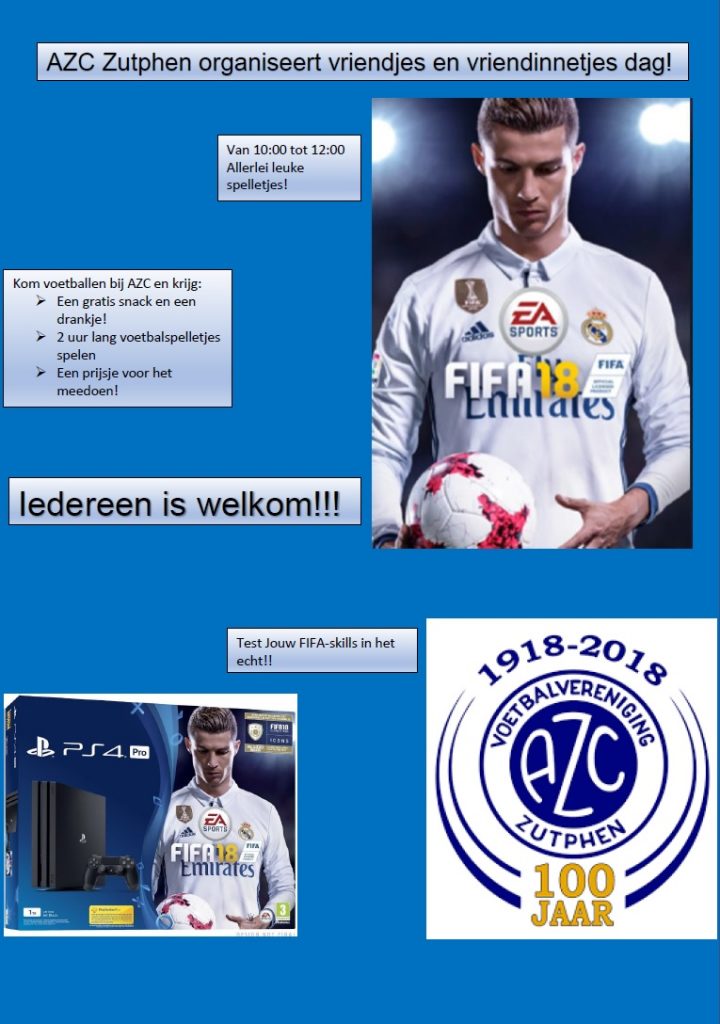 - Op zaterdag 25 augustus organiseert AZC van 10 tot 13 uur op het eigen sportpark een vriendjes en vriendinnetjes dag (i.p.v. 7 juli). Op deze dag zijn er allemaal voetbalspelletjes en krijg je wat drinken en wat te eten. Alle kinderen (tot 15 jaar) uit de buurt zijn uitgenodigd! Wel graag even aanmelden via Azc.Zutphen.inschrijven@gmail.com. Meer info is te vinden op https://www.azczutphen.nl/nieuws/vriendjes-vriendinnetjes-dag/